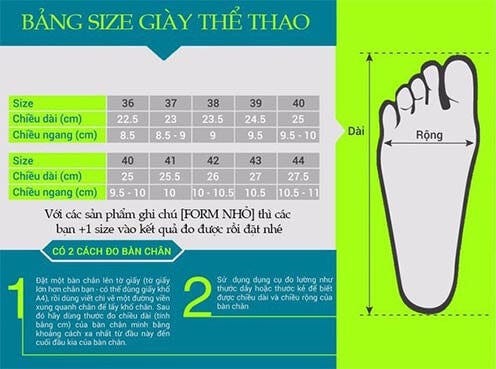 Bước 4: Đối chiếu với với bảng ở trên để chọn ra size giày chuẩn của bạn.